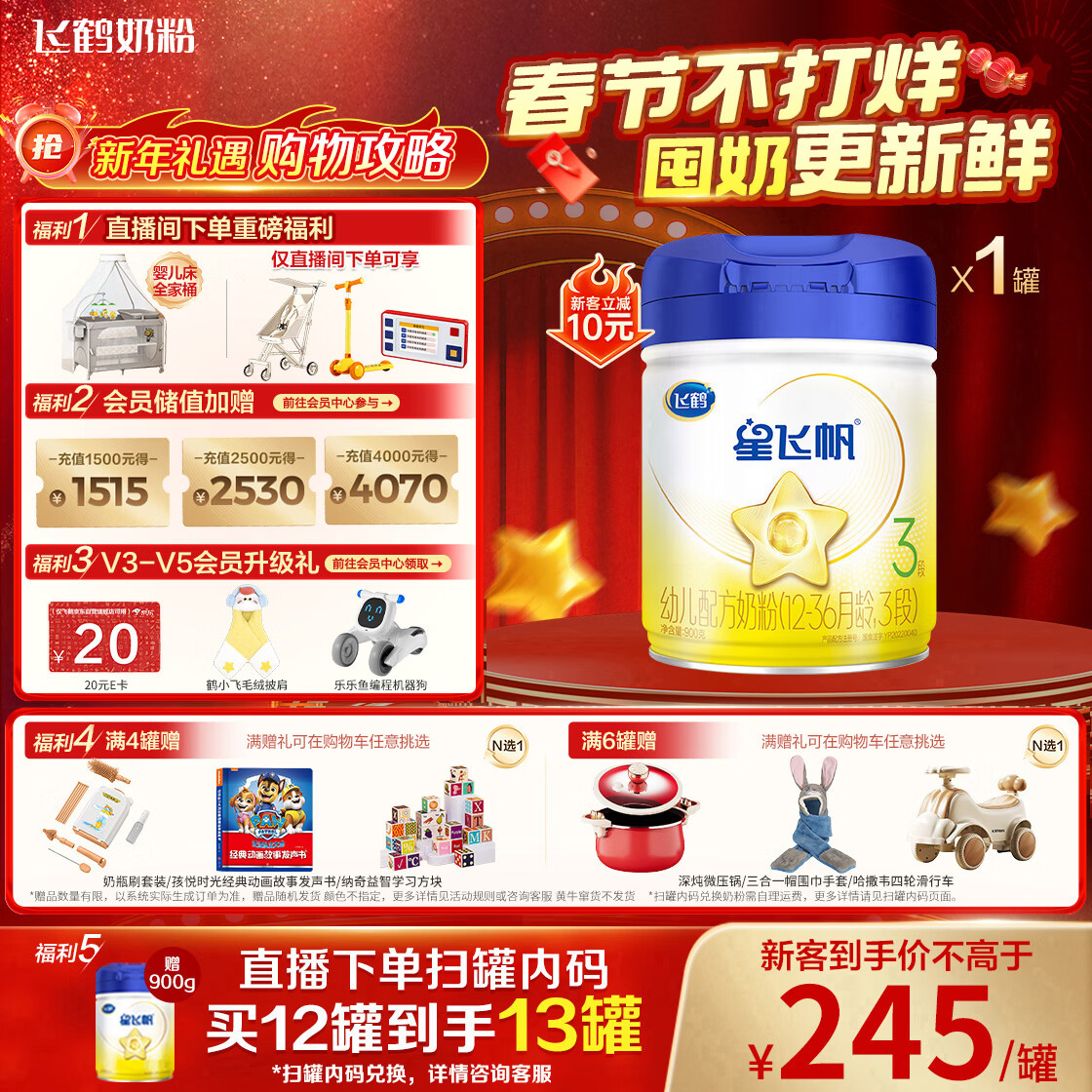 飞鹤星飞帆 幼儿配方奶粉3段(1-3岁) 900g 【5HMOs】专利OPO