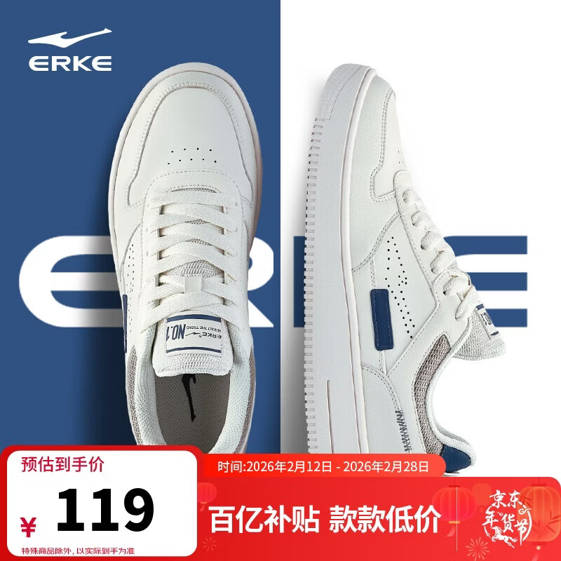 鸿星尔克男鞋秋季新款运动板鞋小白鞋子休闲厚底学生百搭板鞋51122101113