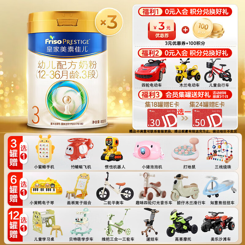 美素佳儿荷兰原装进口较大婴幼儿配方奶粉皇家美素 皇家美素3段800g*3罐