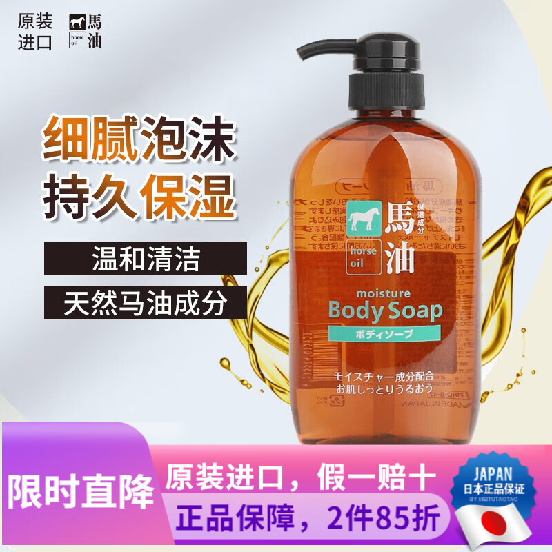 熊野油脂(kumano)日本原装进口 无硅油男女通用滋润天然弱酸马油沐浴护发洗发水 马油沐浴露600ml