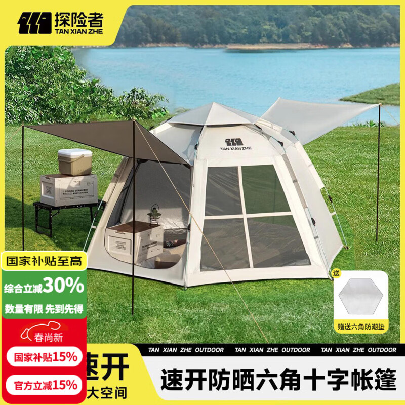 探险者(TAN XIAN ZHE)帐篷户外露营防雨过夜3人-4人全套全自动免搭建帐篷天幕二合一 【两门两窗 加厚银胶】六角帐篷5-8人-赠防潮垫