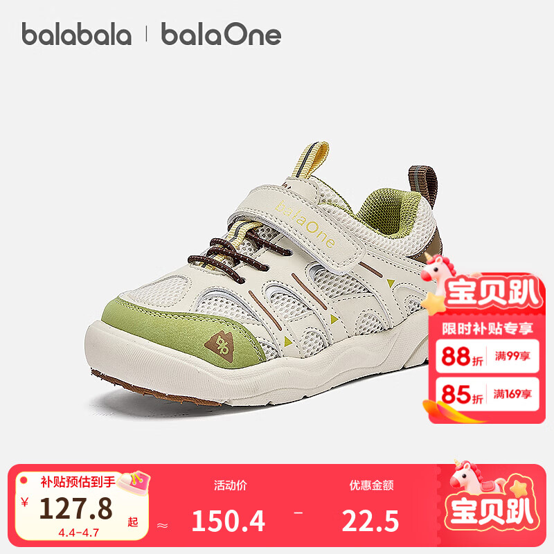 巴拉巴拉童鞋儿童户外鞋男女童2026年新款春秋透气运动鞋时尚校园防滑鞋子 绿色调00344 27 (脚长16.5)