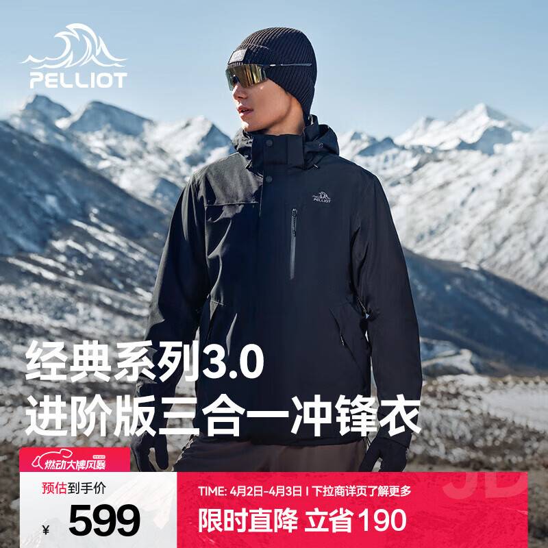 伯希和(Pelliot)【经典3.0山野】三合一冲锋衣男女新款春秋防风防水登山保暖外套 【简约百搭】男漫暮黑 | 配置升级 M