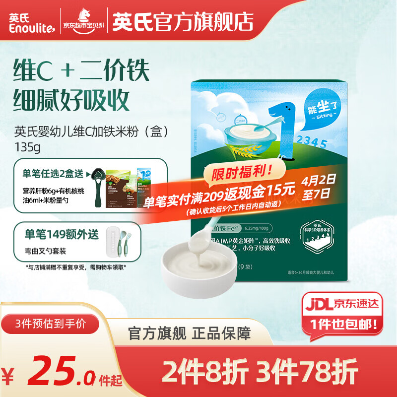 英氏米粉婴儿高铁独立小包装宝宝米粉荤素果蔬6-12个月米糊婴儿细腻 【1阶6月+】维C加铁便携 135g*1盒