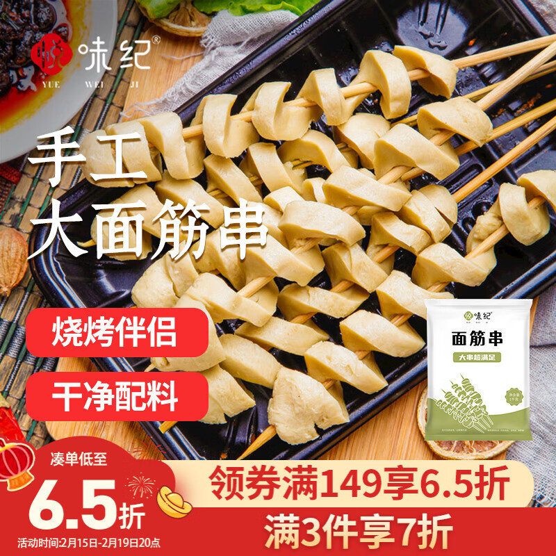 悦味纪 手工大面筋串1kg 共20支 竹签烤串 露营烧烤食材 半成品速食