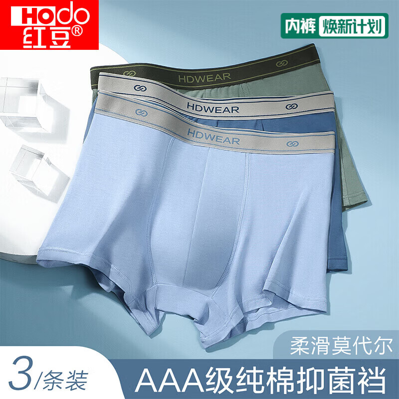 红豆(Hodo)男士内裤抑菌裆中腰平角内裤透气青年潮男士内裤3条裝 HCK011组合一 L 170/78A