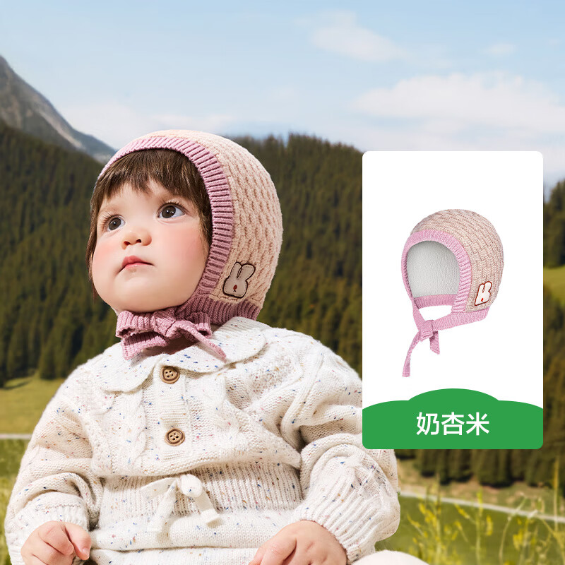 KocotreeKK树宝宝帽子秋冬婴幼儿A类护耳针织帽男童女孩保暖抗静电儿童帽 奶杏米 XS:帽围44-46cm ,建议6个月-1岁