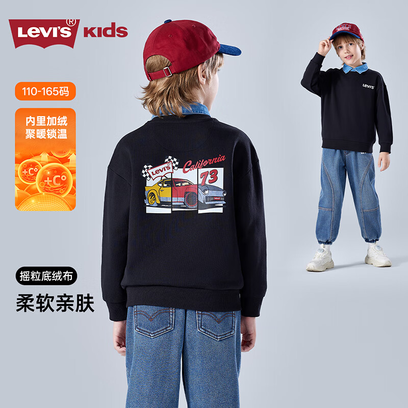 Levi's【加绒】李维斯儿童童装卫衣2025新款字母圆领男童长袖上衣 黑美人 140 /68 【建议身高128-140cm】