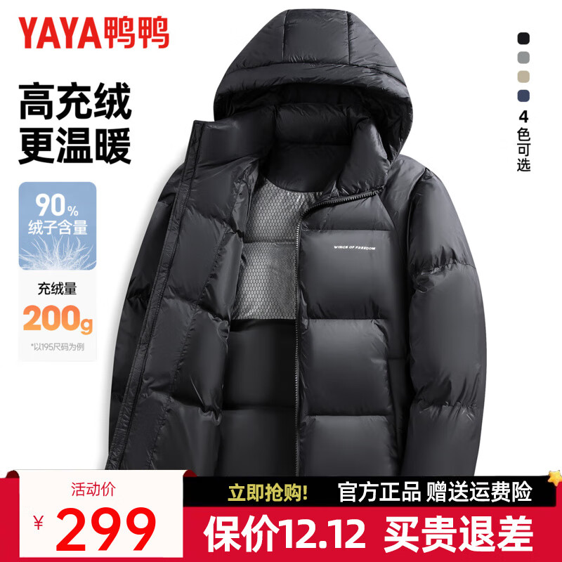 鸭鸭(YAYA)【充绒高达200g】羽绒服男冬季连帽保暖极寒加厚面包服外套男JH 黑色 L (175)