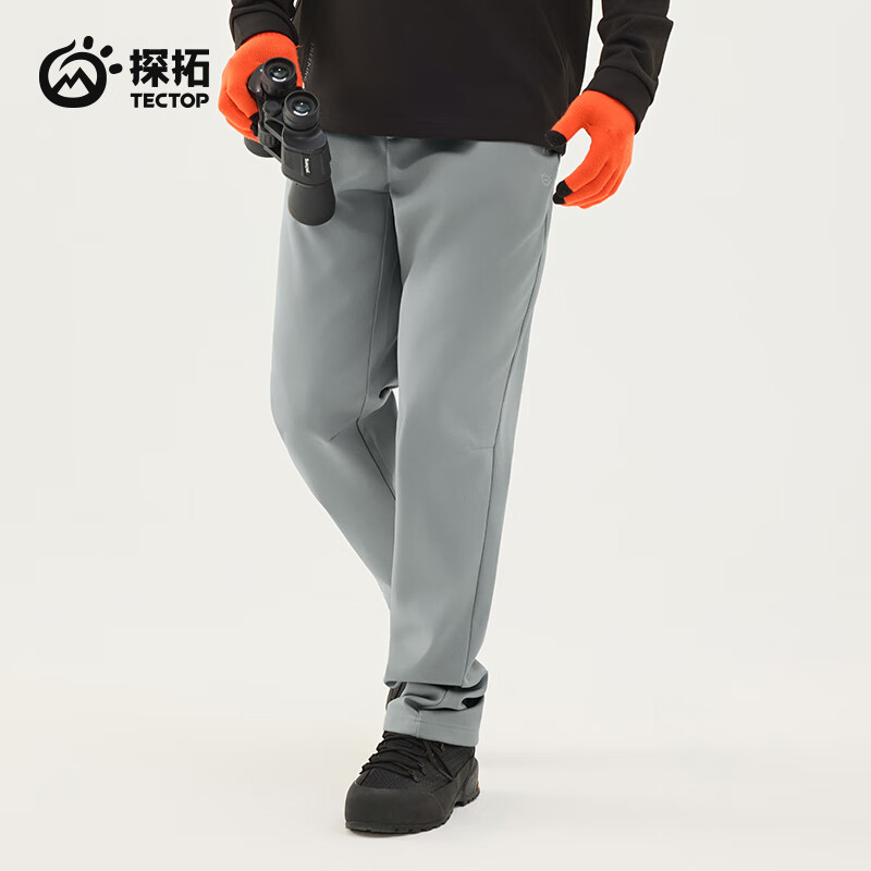 探拓(TECTOP)加绒保暖软壳裤男防风加厚徒步登山裤女户外运动裤子 男款炊烟灰【加厚】 XL