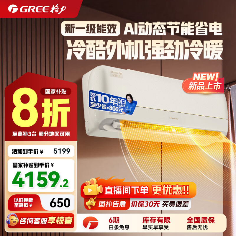 格力全能王 新能效 变频冷暖 自清洁 壁挂式 卧室空调挂机 1.5匹 一级能效 全能王