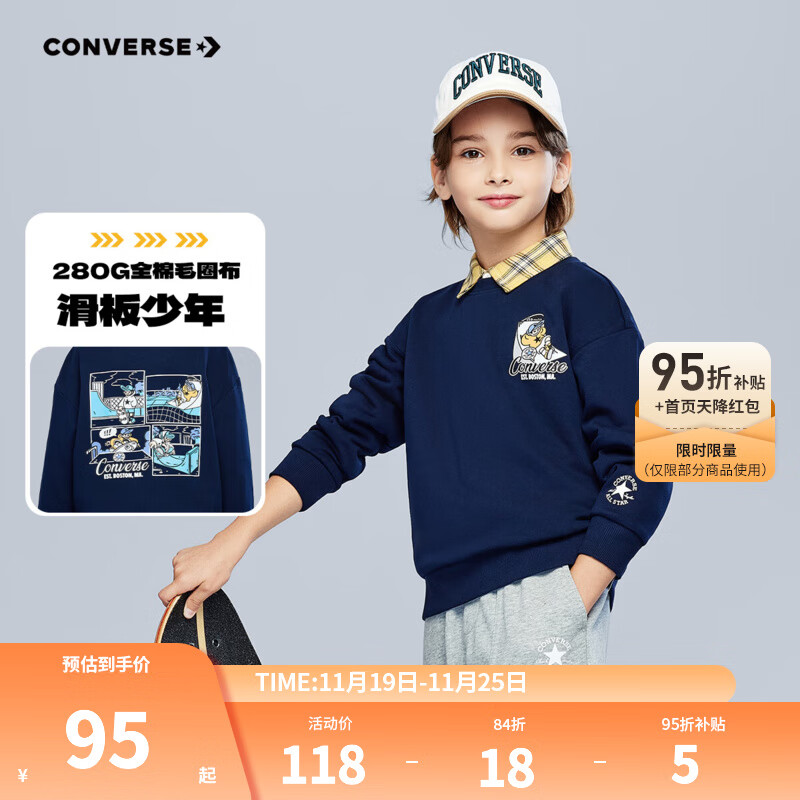 Converse匡威童装男童卫衣2025秋季新款套头长袖打底衫上衣漫画印花童趣潮 藏青蓝 130 /64 【建议身高116-122cm】