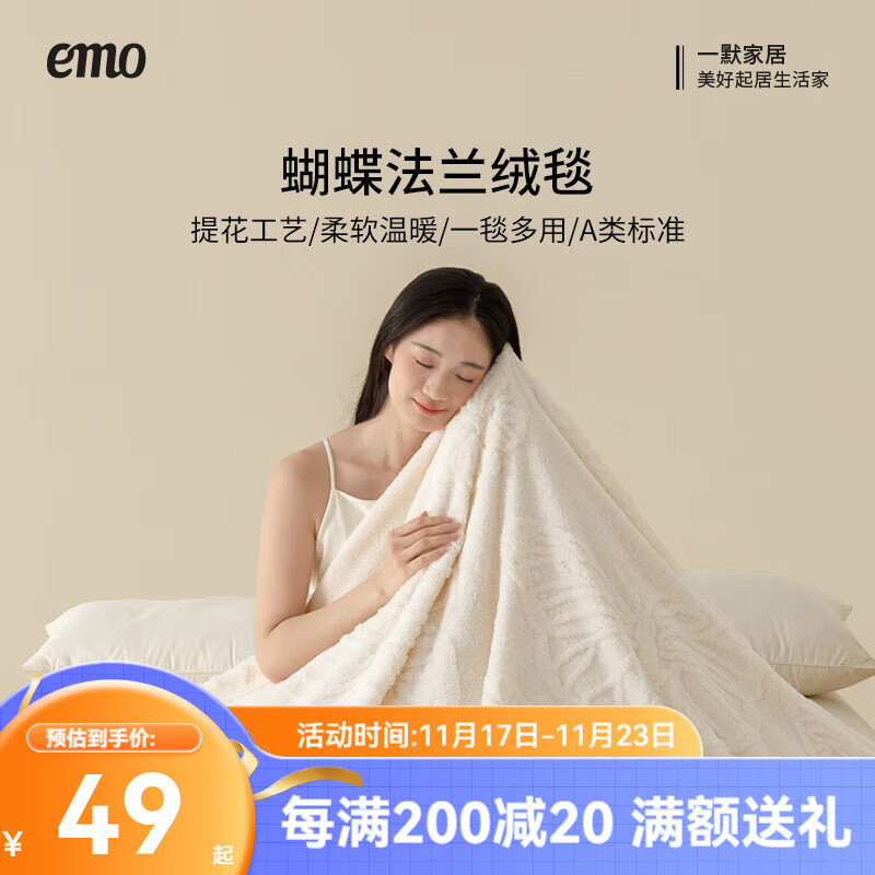 一默毛毯秋冬季加厚保暖居家床上沙发毯子办公室午睡毯蝴蝶法兰绒盖毯 霜白(多用途绒毯) 100*150cm