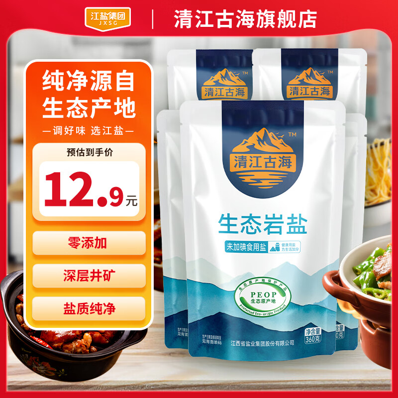 清江古海无碘盐360g*5袋 未加碘食用盐零添加生态岩盐 家用盐巴无抗结剂