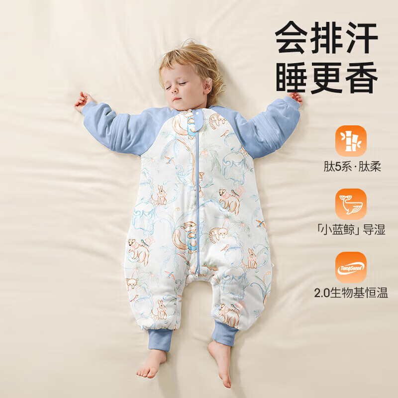 贝肽斯【肽柔】婴儿睡袋春秋恒温宝宝分腿儿童防踢被四季通用保暖 天竹×恒温【春秋双层 室温20-26℃】丛林密境 M【80-95cm】15个月-2.5岁