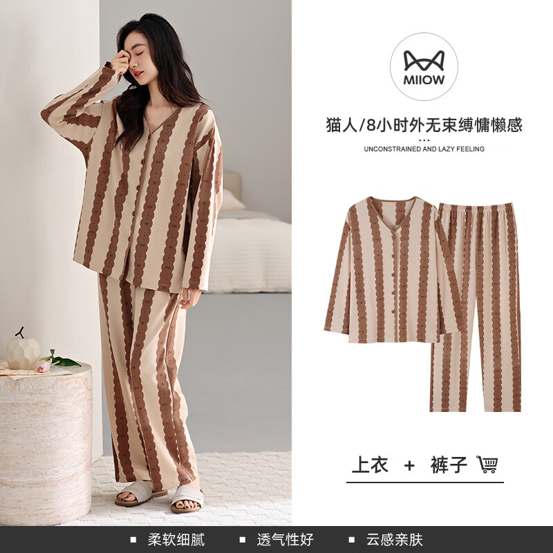 猫人(MiiOW)高端睡衣女2025新款秋冬长袖纯棉布料100全棉长袖家居服女可外穿 XX-116015【云感贴肤 纯棉】 2XL 【140-160斤】