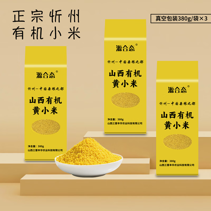 源合态山西黄小米新米农家粗粮杂粮米早餐小米粥米伴侣米油粘稠真空包装 有机黄小米380g*3袋