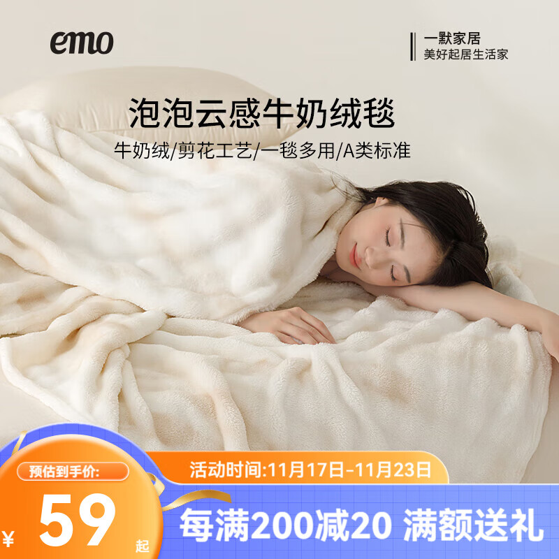 一默毛毯保暖加厚居家沙发盖毯A类亲肤办公室午睡空调毯牛奶绒毛毯子 米白 100*150cm