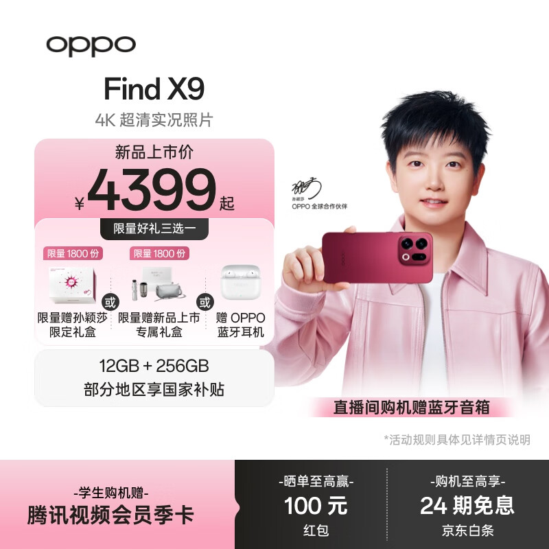 OPPO Find X9 旗舰手机 4K 超清实况照片 7025mAh 冰川电池 丹霞色彩还原镜头 【孙颖莎同款】 追光红 12GB+256GB