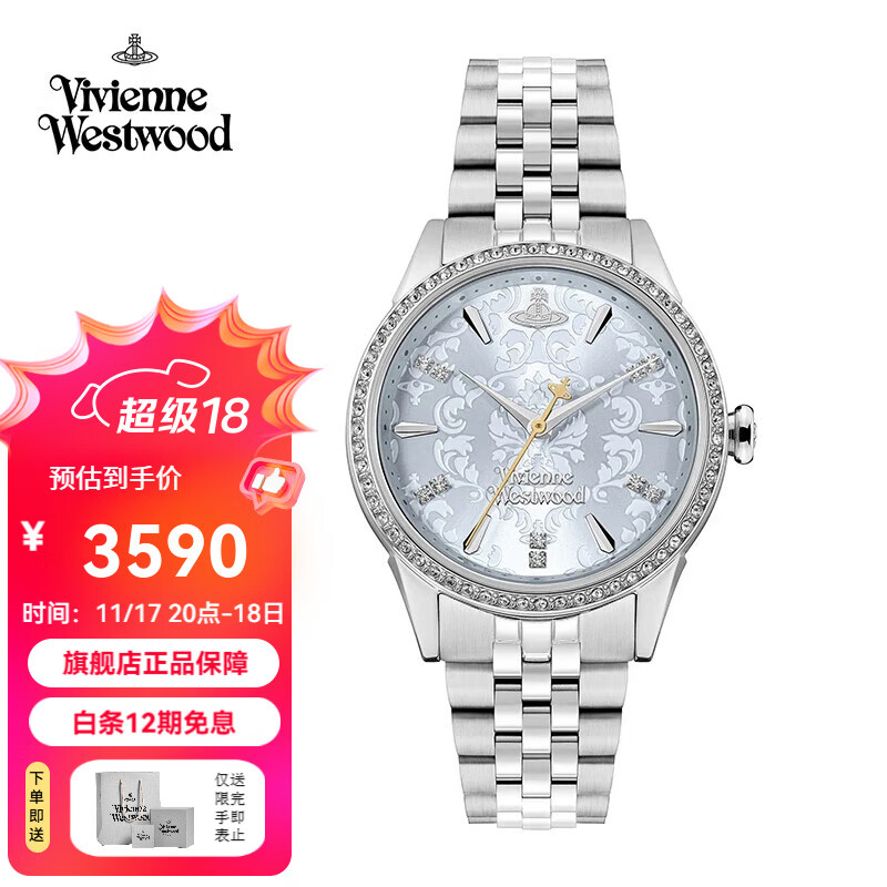 Vivienne Westwood2025新款西太后手表女士印花浮雕满钻饰生日礼物送女友送老婆 冰白蓝 VV327LBLSL