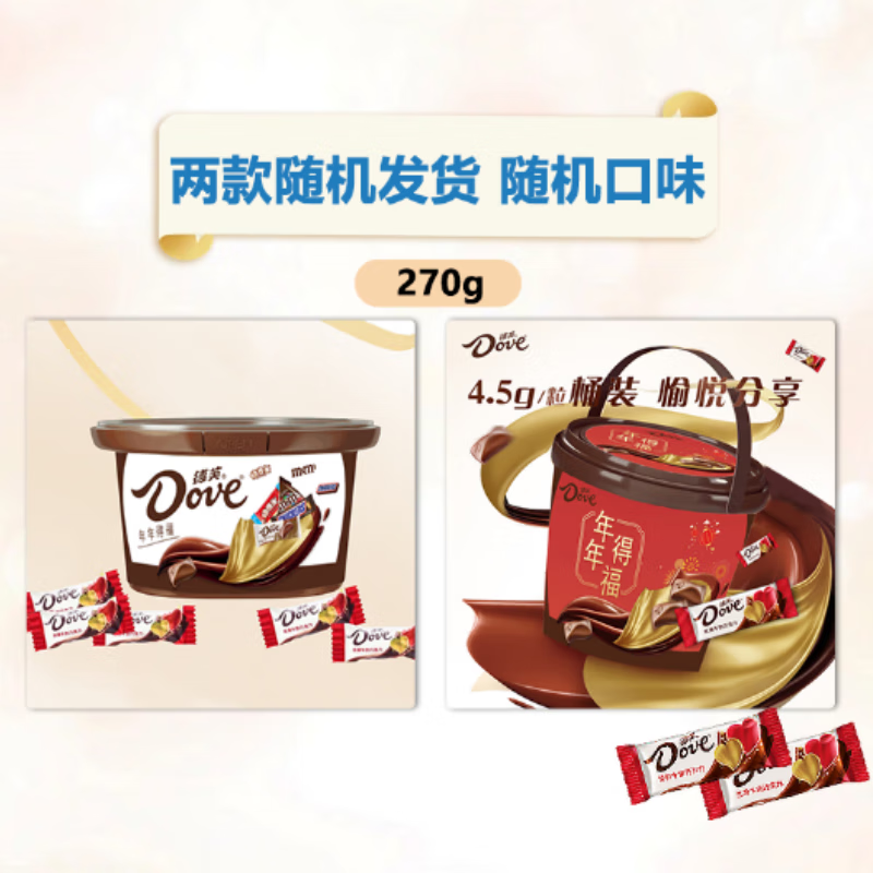 德芙(Dove)巧克力糖果礼盒生日礼物女生老婆女友零食tzt 德芙随机口味270g分享桶
