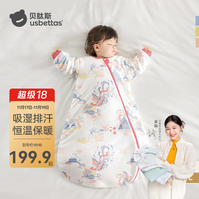 贝肽斯睡袋婴儿秋冬恒温新生儿童宝宝睡袋一体式防踢被惊跳包被衣连体2 凤鸾 冬季中厚-感温(10-20℃) M码建议身高65-85cm年龄9月-2岁