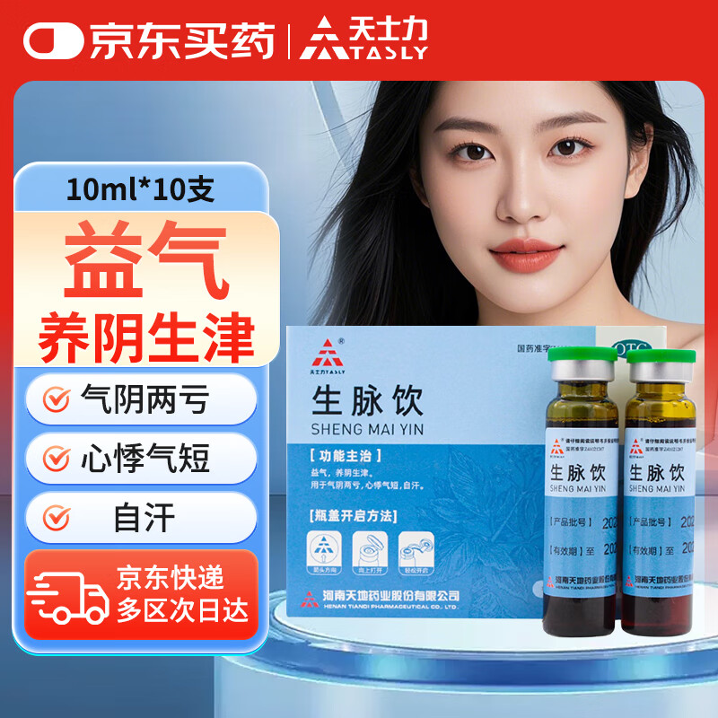 天士力生脉饮红参方(人参方)10ml*10支 补气 益气养阴生津气阴两亏气虚心悸气短自汗非黄芪精