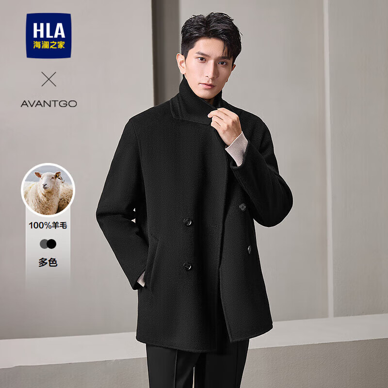 HLA海澜之家大衣男轻商务经典系列纯羊毛保暖外套男冬