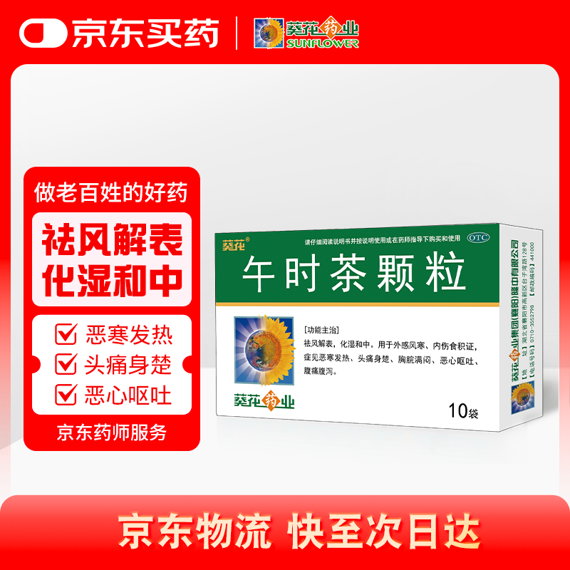 葵花 午时茶颗粒 6g*10袋感冒药祛风解表 化湿和中 外感风寒 内伤食积证 恶寒发热 头痛身楚 胸脘满闷 恶心呕吐 腹痛腹泻