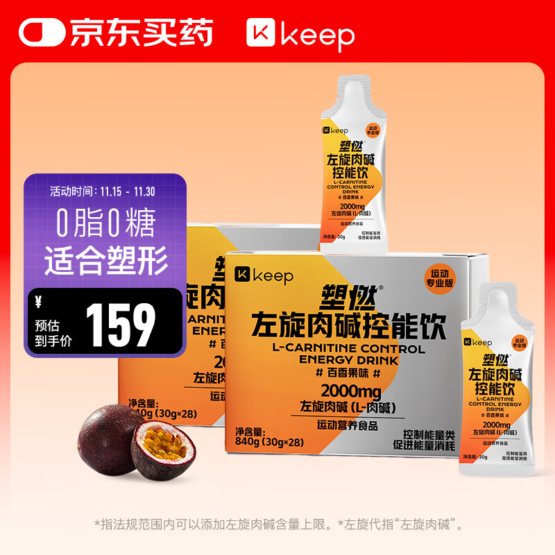 Keep 左旋肉碱塑燃0脂0糖控能运动饮料840g*2 健身饮品
