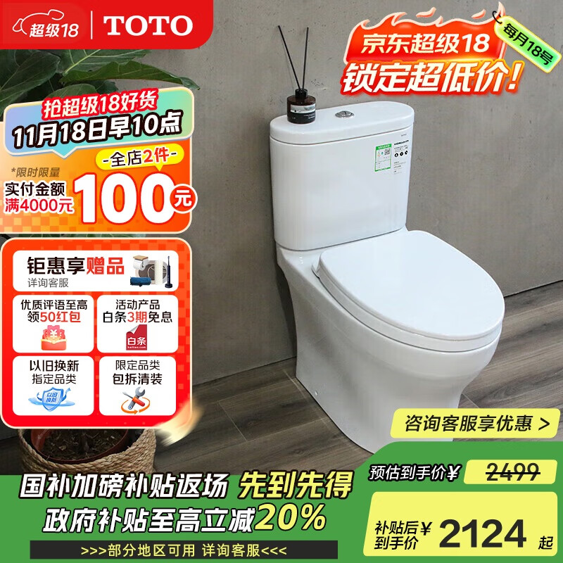 TOTO智洁马桶无棱内壁直冲节水全包家用坐便器CW802 305坑距(04-B)
