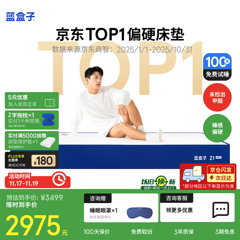 蓝盒子Z1小石头记忆棉护脊独立弹簧床垫双人席梦思线下同款1.8*2米偏硬