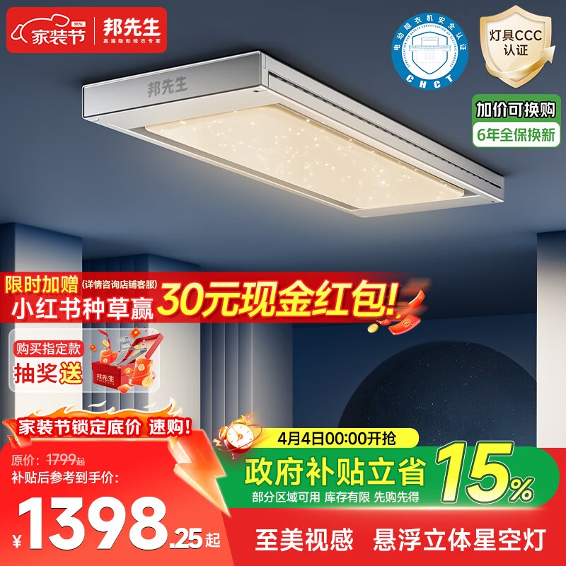 邦先生电动晾衣架隐藏式智能阳台晒衣架【M66PRO】星空灯+离线语音