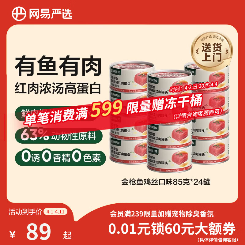 网易严选 宠物零食浓汤红肉罐头 金枪鱼鸡丝口味85克*24罐
