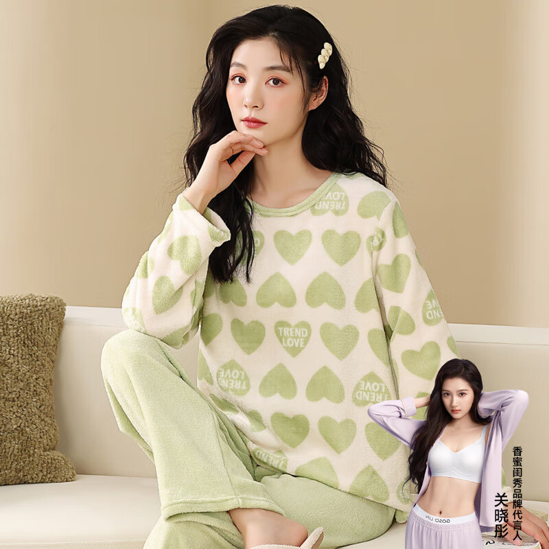 香蜜闺秀GOSO睡衣女肤暖绒秋冬可外穿柔软舒适家居服套装女【商城同款】 果绿 L