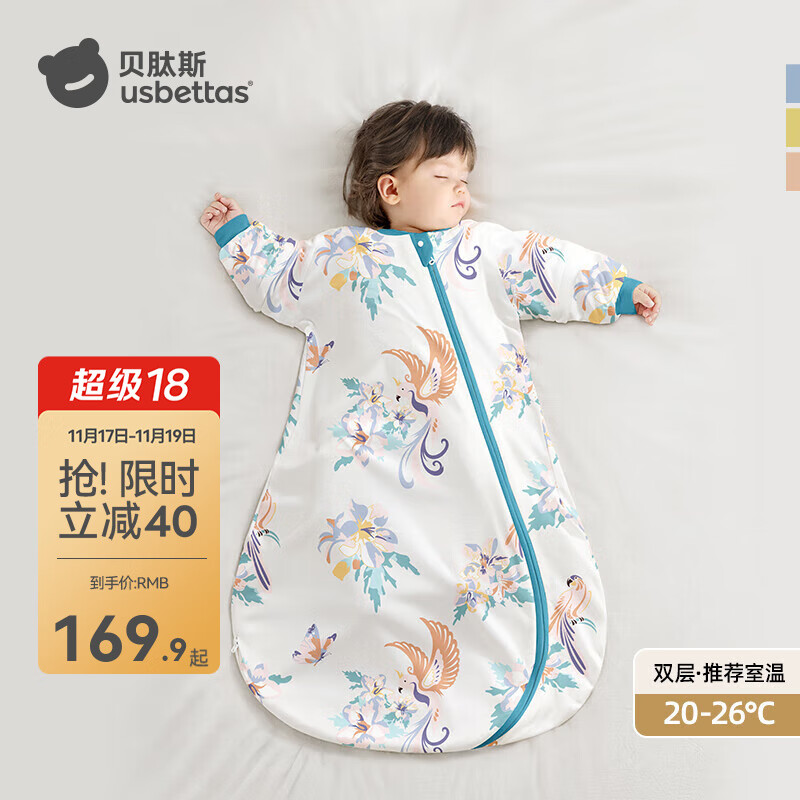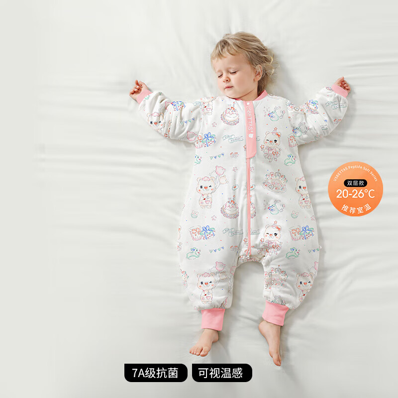 贝肽斯【肽暖】婴儿睡袋春秋冬暖姜恒温宝宝分腿儿童防踢被四季款 天竹×恒温【春秋双层 室温20-26℃】觅蜜派对 S码【身高60-85cm】年龄6-18个月