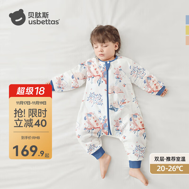 贝肽斯肽柔婴儿睡袋春秋冬新生儿防踢被分腿感温标儿童大码防惊跳 春秋双层-感温(20-26℃)兔语 M码 80-95cm(建议1.5-2.5岁)
