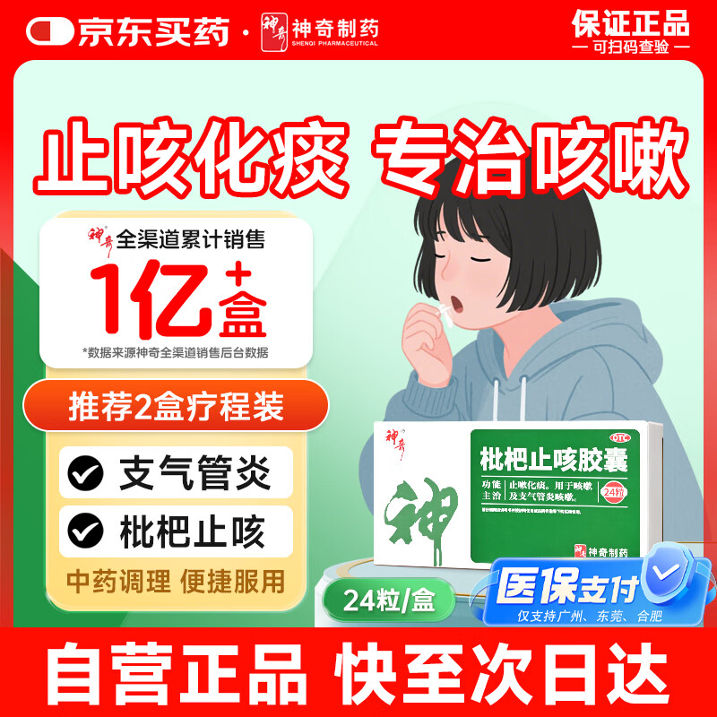 神奇 枇杷止咳胶囊 0.25*24粒/盒 止咳化痰清肺感冒药支气管炎成人咳嗽喉咙痒干咳异物感川贝枇杷非膏颗粒