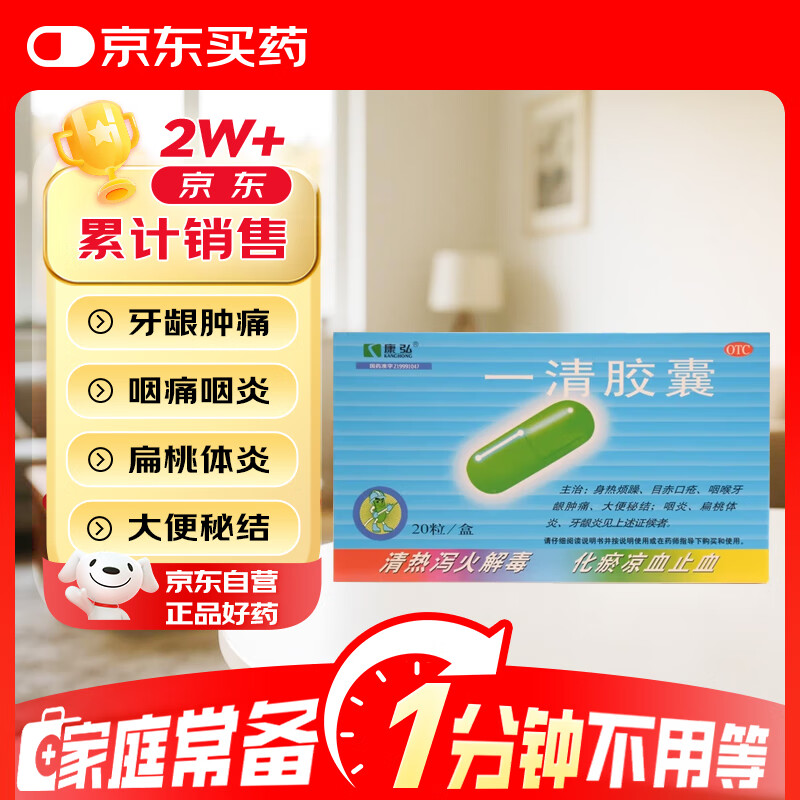 康弘 一清胶囊 0.5g*20粒 风热感冒药感冒咳嗽 咽喉肿痛咽炎扁桃体炎 清热解毒上火 牙龈肿痛