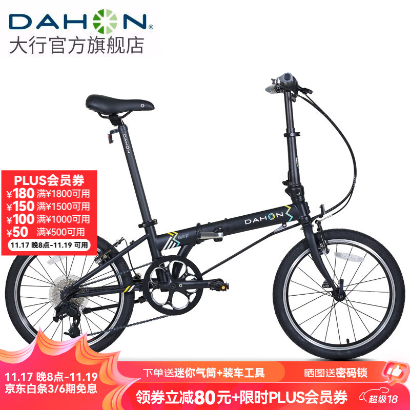 大行(DAHON)青春版P8折叠自行车20寸8速成人超轻男女式单车KAC081 消光黑
