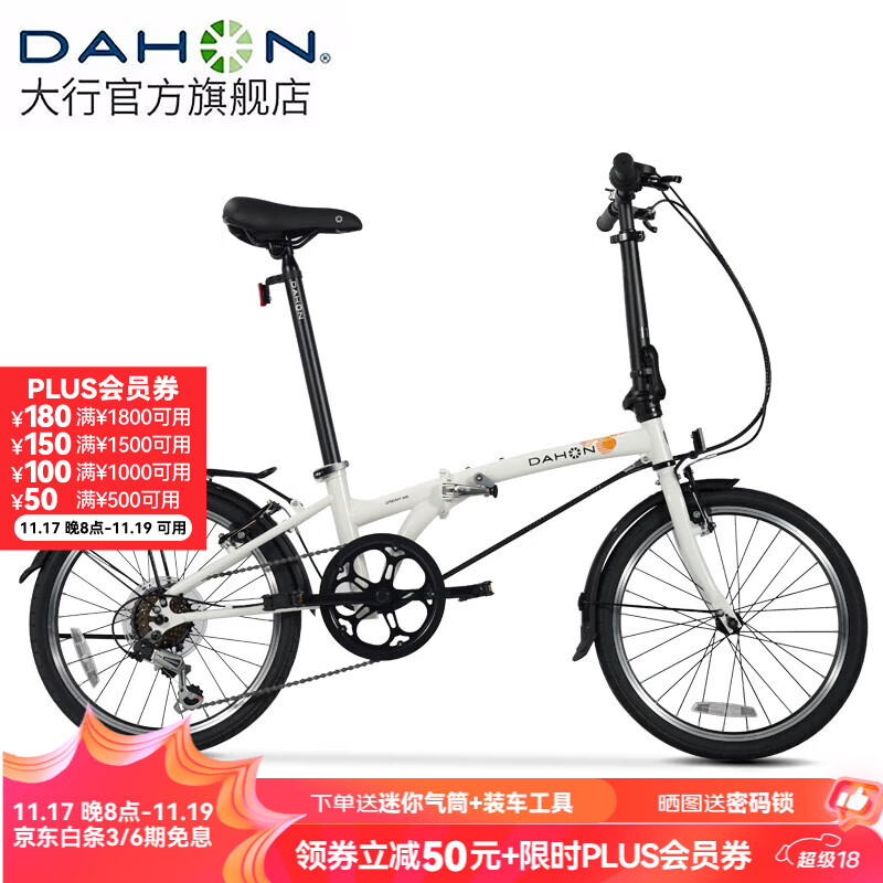 大行(DAHON)HAT061折叠自行车20英寸6速成人男女通勤休闲变速单车 白色