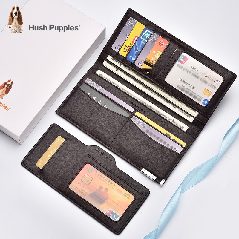 暇步士(Hush Puppies)男士钱包真皮长款钱夹头层牛皮钱卡包两件套可拆分 214W啡色