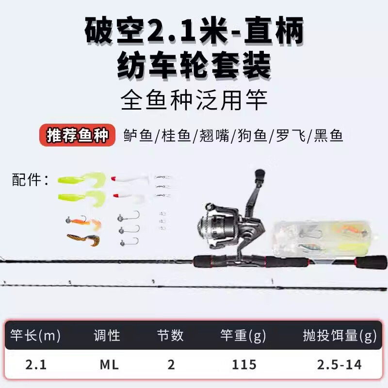 迪卡侬碳素路亚竿纺车轮海钓鱼竿 2.1m 单竿含渔轮+赠