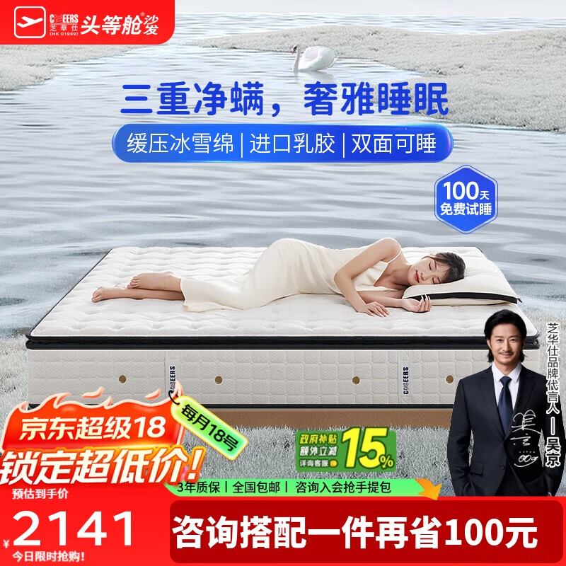 芝华仕(CHEERS)乳胶床垫独袋弹簧席梦思床垫护腰脊家用白天鹅垫芝华士D129 1.8m