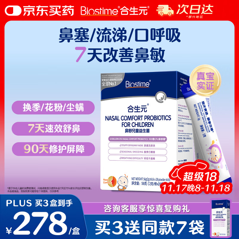 合生元(BIOSTIME)小鼻舒益生菌儿童舒敏好鼻子鼻炎益生菌28袋