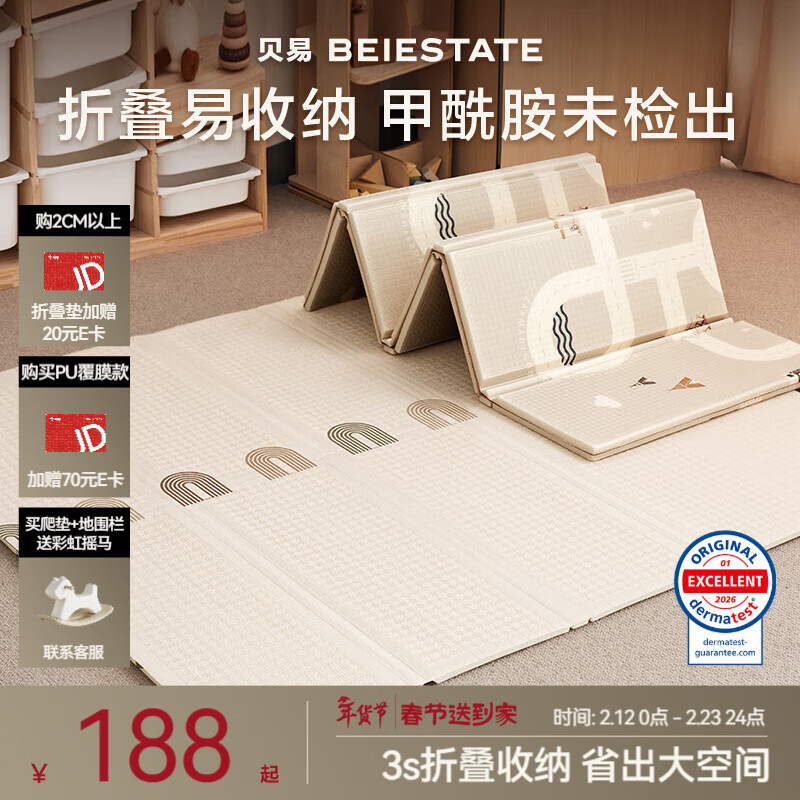 贝易宝宝爬爬垫婴儿折叠垫无味XPE客厅地垫儿童加厚爬行垫泡沫防摔垫 26年革新升级!【蜂氧棉XPE压边】彩虹+轨道 180*200*2CM【0甲酰胺0甲醛99%抗菌】