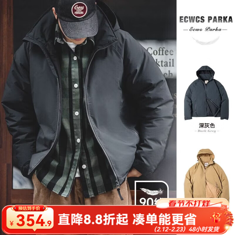 马登90白鸭绒连帽外套男士羽绒服冬季加厚保暖上衣休闲防风面包服 深灰色 【防寒服/男生羽绒服/外套冬季男/厚衣服】 L