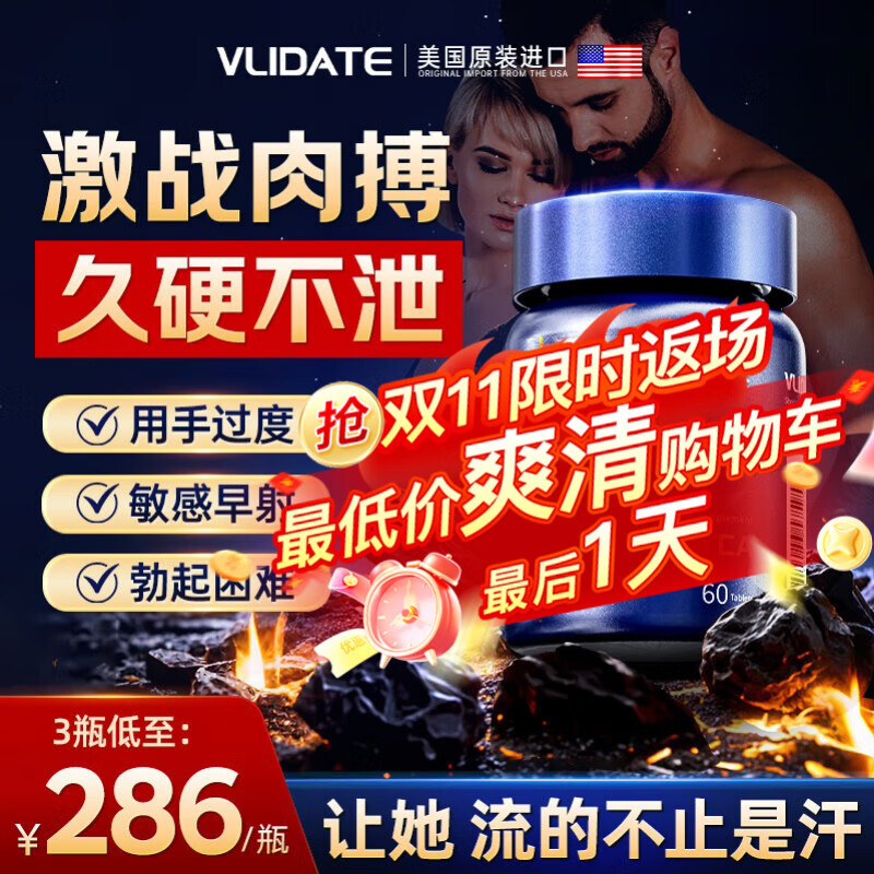 vlidate美国进口黑玛咖卡牡蛎片精氨酸补肾壮阳强身促睾酮素男士性保健品