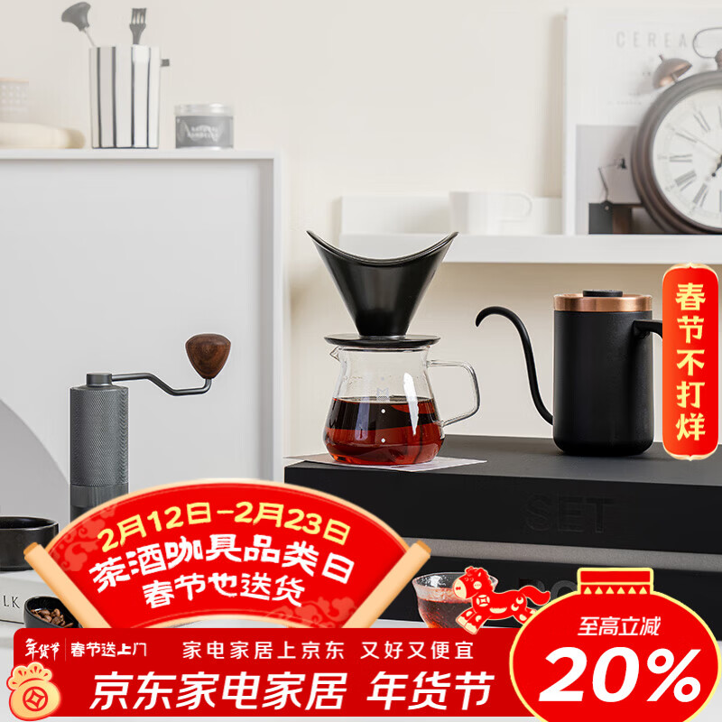 MAVO【新年礼物】手冲咖啡壶套装礼盒 手冲壶磨豆机分享壶滤杯礼品 2号咖啡礼盒2.0曜岩黑