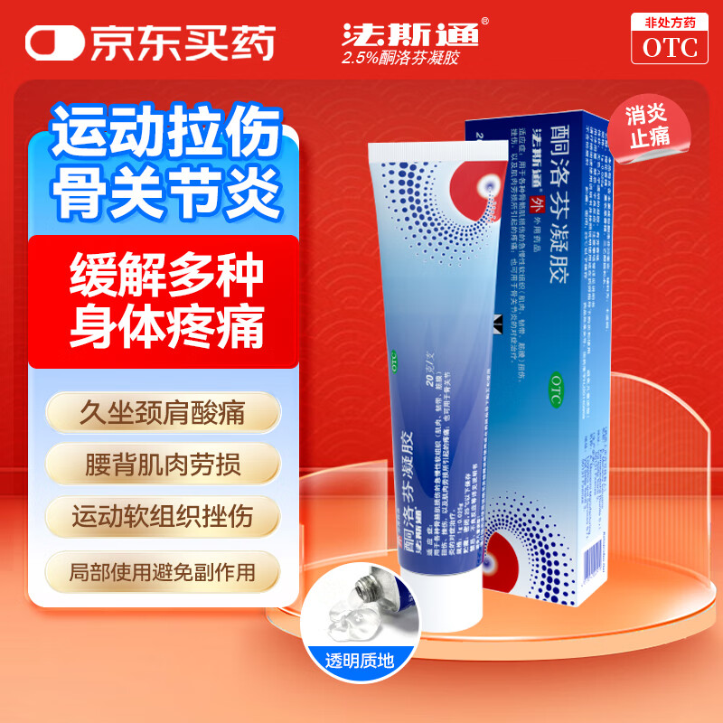 法斯通 酮洛芬凝胶20g/支 骨骼肌肉损伤软组织肌肉韧带扭伤拉伤挫伤劳损疼痛风湿骨关节炎治疗